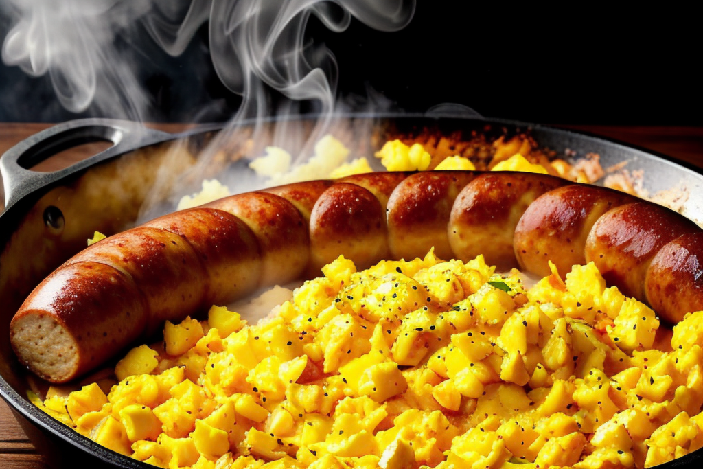 Jajecznica z kiełbasą to jedno z tych dań, które idealnie sprawdza się na śniadanie, lunch czy kolację. Jest szybka i